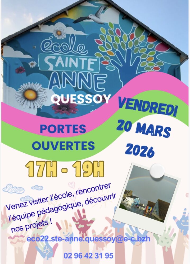 Bienvenue à l'école Sainte-Anne de Quessoy. Rentrée septembre 2025 : inscriptions ouvertes de la TPS au CM2.