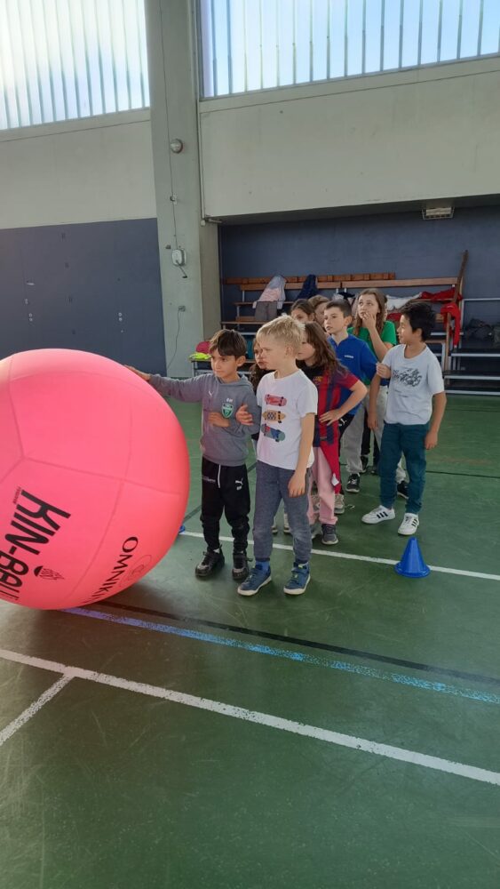 Les CE2 ont commencé leur initiation au kinball avec Pauline et Maëlys. L’occasion de tester un jeu de ballon innovant qui demande adresse et coopération. Avec un ballon aussi gros, les élèves ne peuvent réussir individuellement, ils sont obligés de faire équipe et de s’entraider.