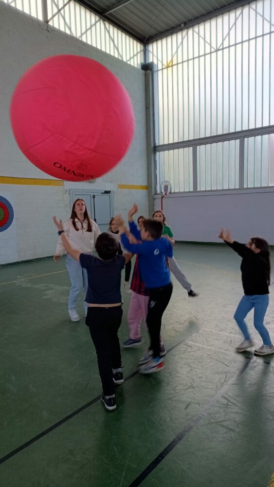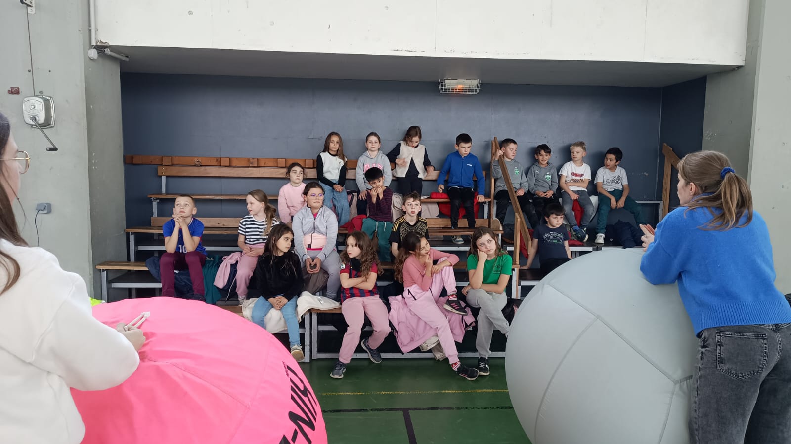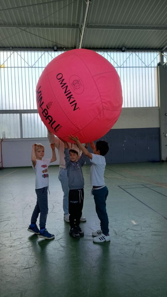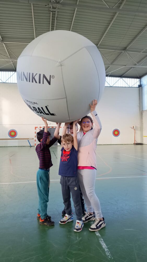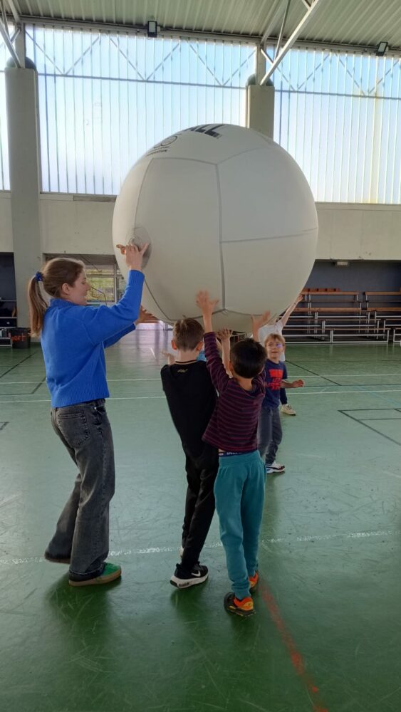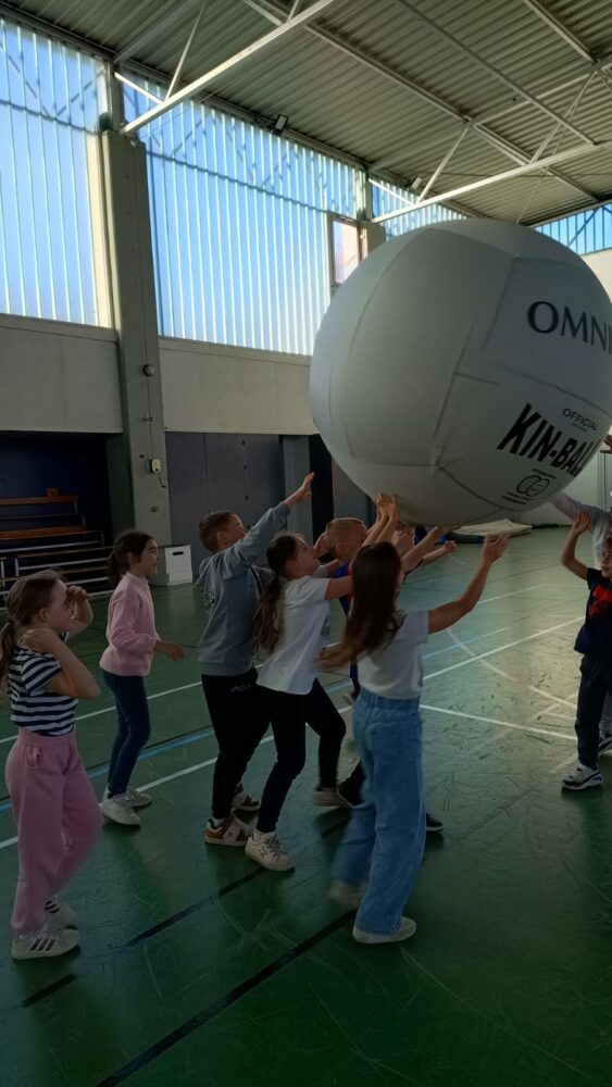 Les CE2 ont commencé leur initiation au kinball avec Pauline et Maëlys. L’occasion de tester un jeu de ballon innovant qui demande adresse et coopération. Avec un ballon aussi gros, les élèves ne peuvent réussir individuellement, ils sont obligés de faire équipe et de s’entraider.