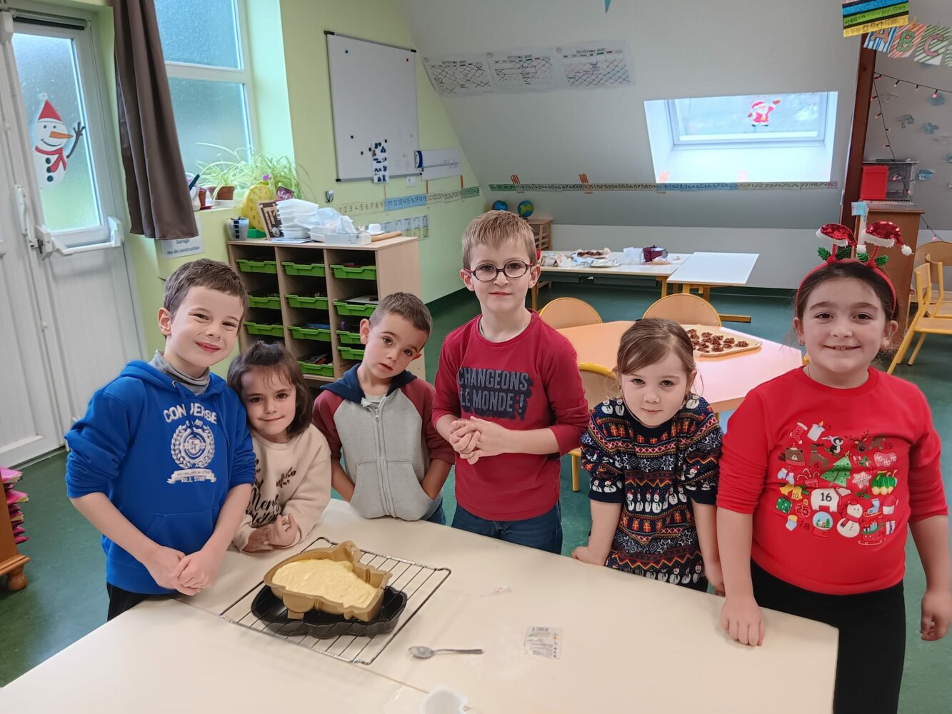 Ils ont échangé les classes pour faire un bricolage: une très belle guirlande, et de la cuisine: des roses des sables et des gâteaux en au yaourt en forme de bonhomme de neige et d’étoile filante.