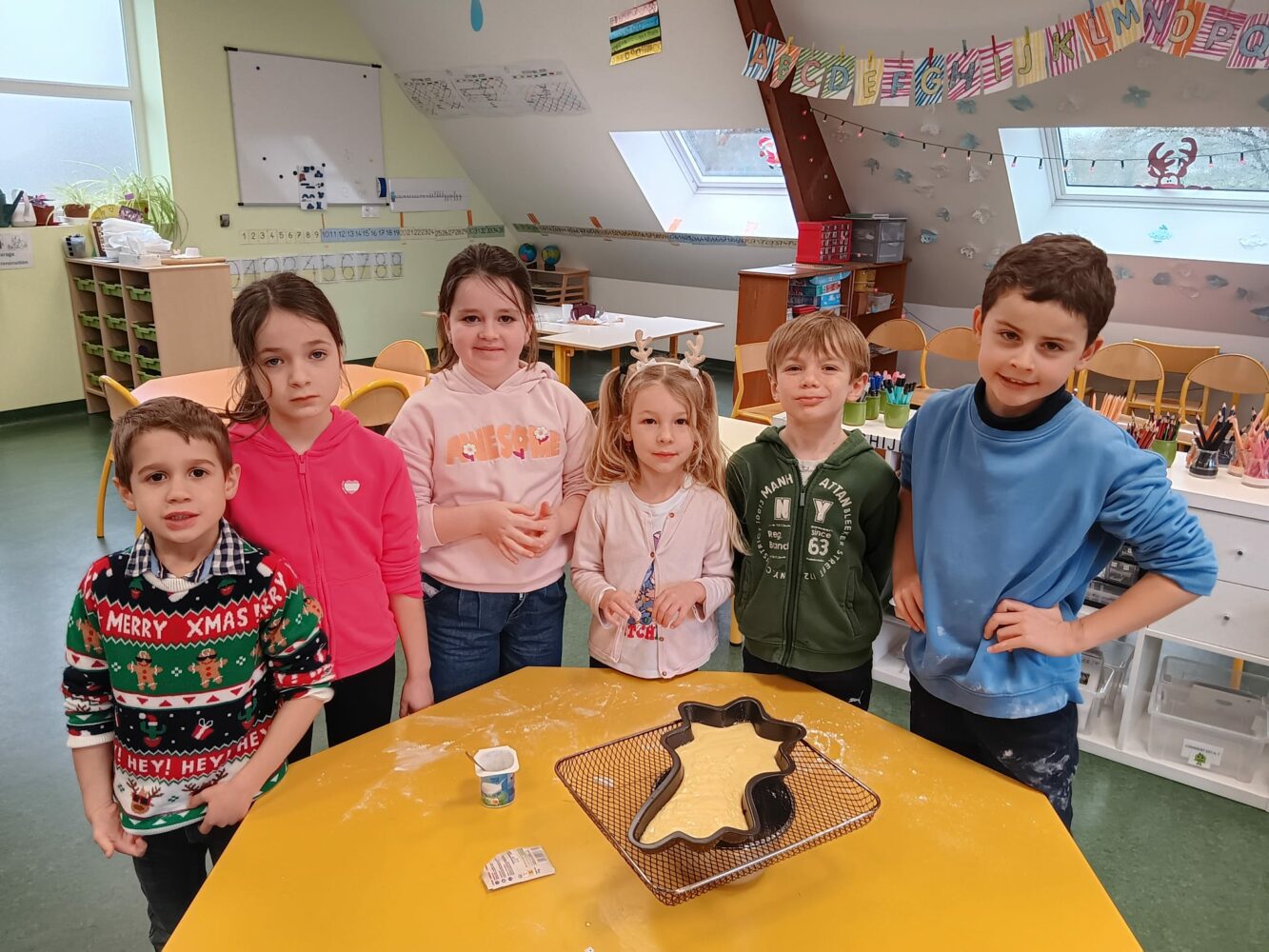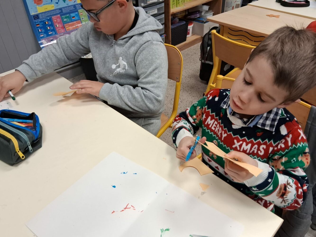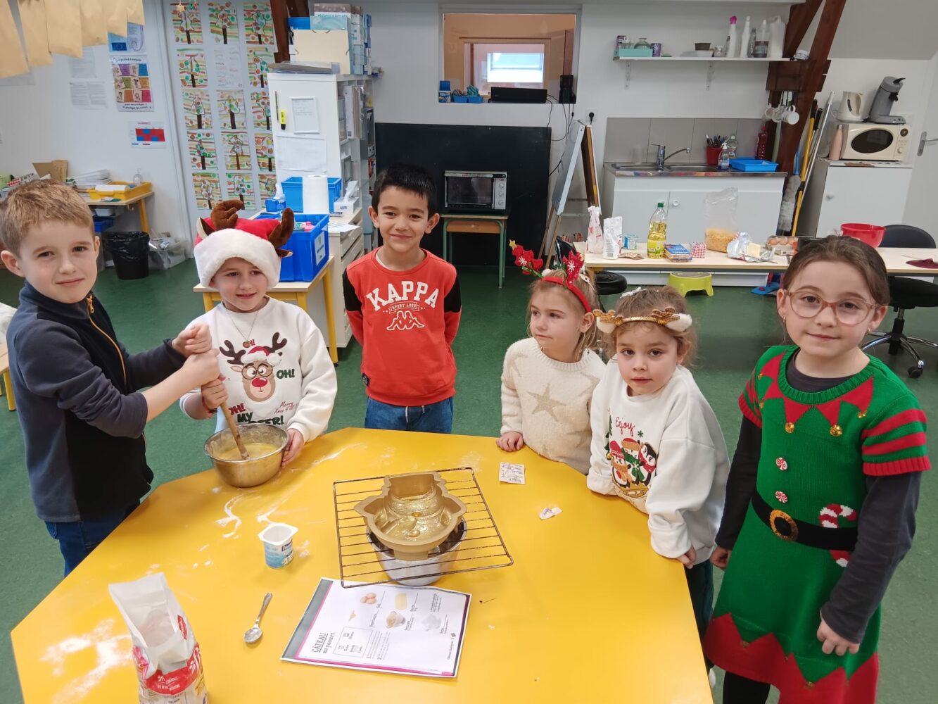 Ils ont échangé les classes pour faire un bricolage: une très belle guirlande, et de la cuisine: des roses des sables et des gâteaux en au yaourt en forme de bonhomme de neige et d’étoile filante.