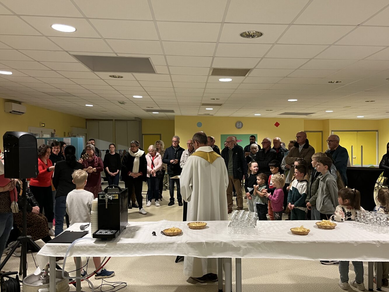 L’inauguration et la bénédiction des locaux rénovés de l’école a eu lieu le vendredi 7 novembre en présence du Père Laurent Le Meilleur. Depuis l’été dernier, l’école a entrepris un vaste projet de rénovation énergétique du bâtiment en pierres, construit à la fin du XIXᵉ siècle, qui abrite les cinq classes d’élémentaire. Cette première tranche de travaux, achevée aux vacances de la Toussaint, a permis la rénovation d’une partie de la toiture, l’isolation thermique du bâtiment et le réaménagement de plusieurs espaces essentiels à la vie de l’école. L’école dispose désormais d’une salle de classe dédiée à l’enseignement spécialisé au rez-de-chaussée, d’une nouvelle salle des maîtres à l’étage, d’un bureau de direction repensé et d’un bureau pour le secrétariat de l’OGEC.