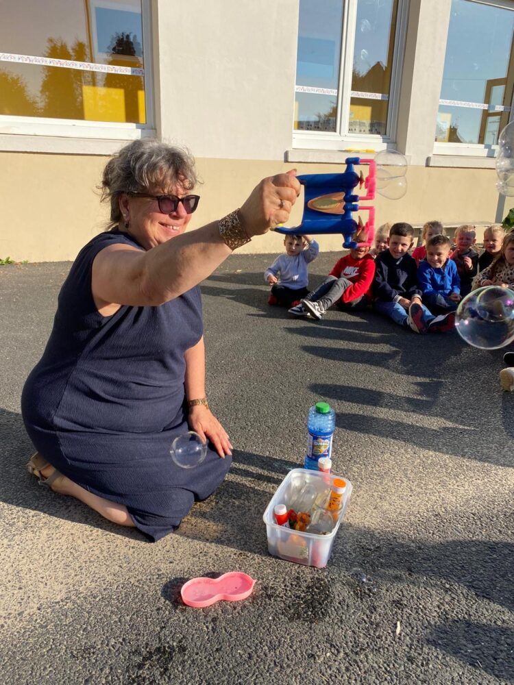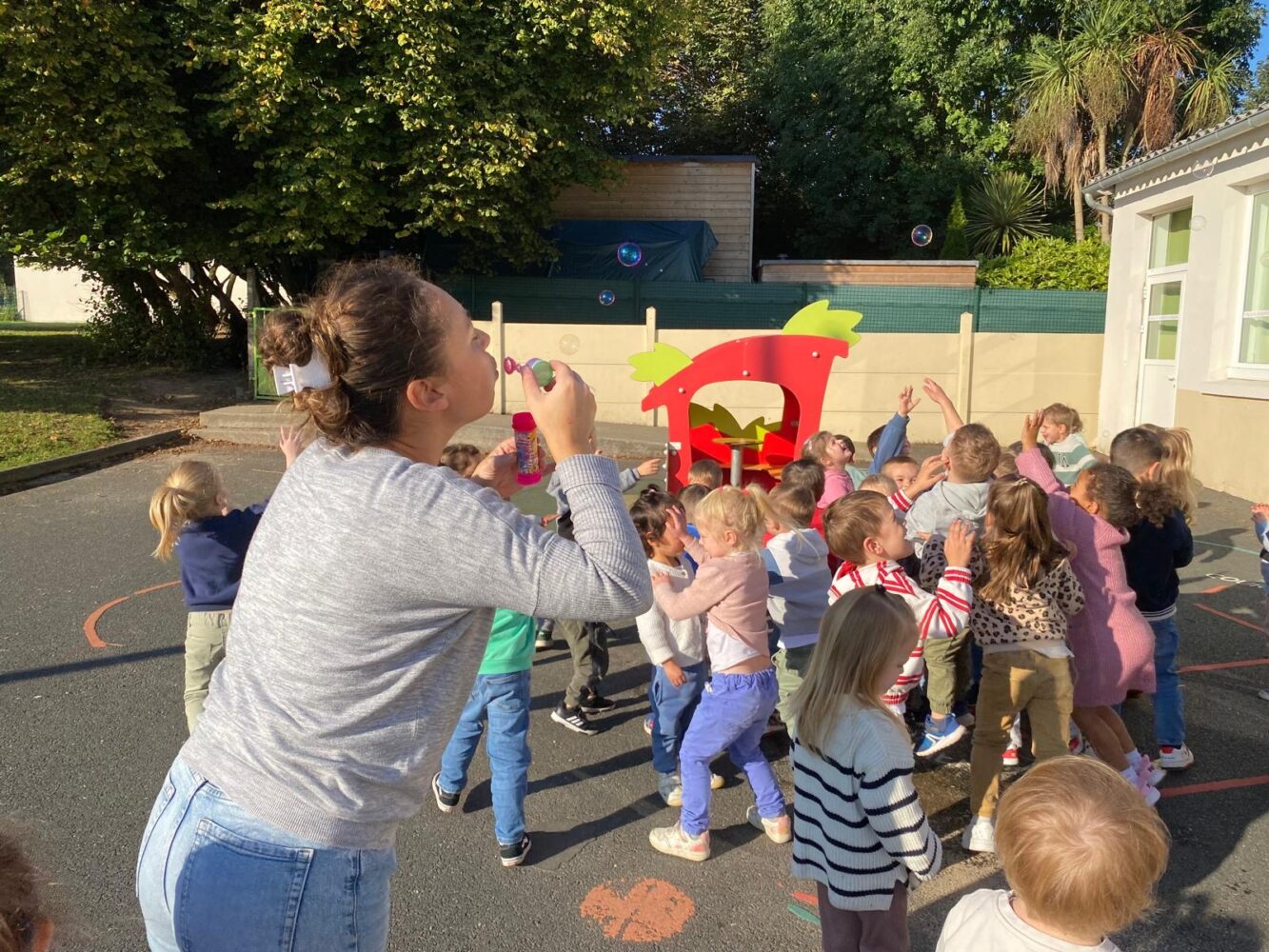 Les bulles en PS/MS par Manuela Chevalier | Oct 4, 2025 | Accueil, MS, TPS-PS Atelier « découverte de la forme ronde », grâce à une séance de bulles à l’extérieur, pour les classes de PS et MS.