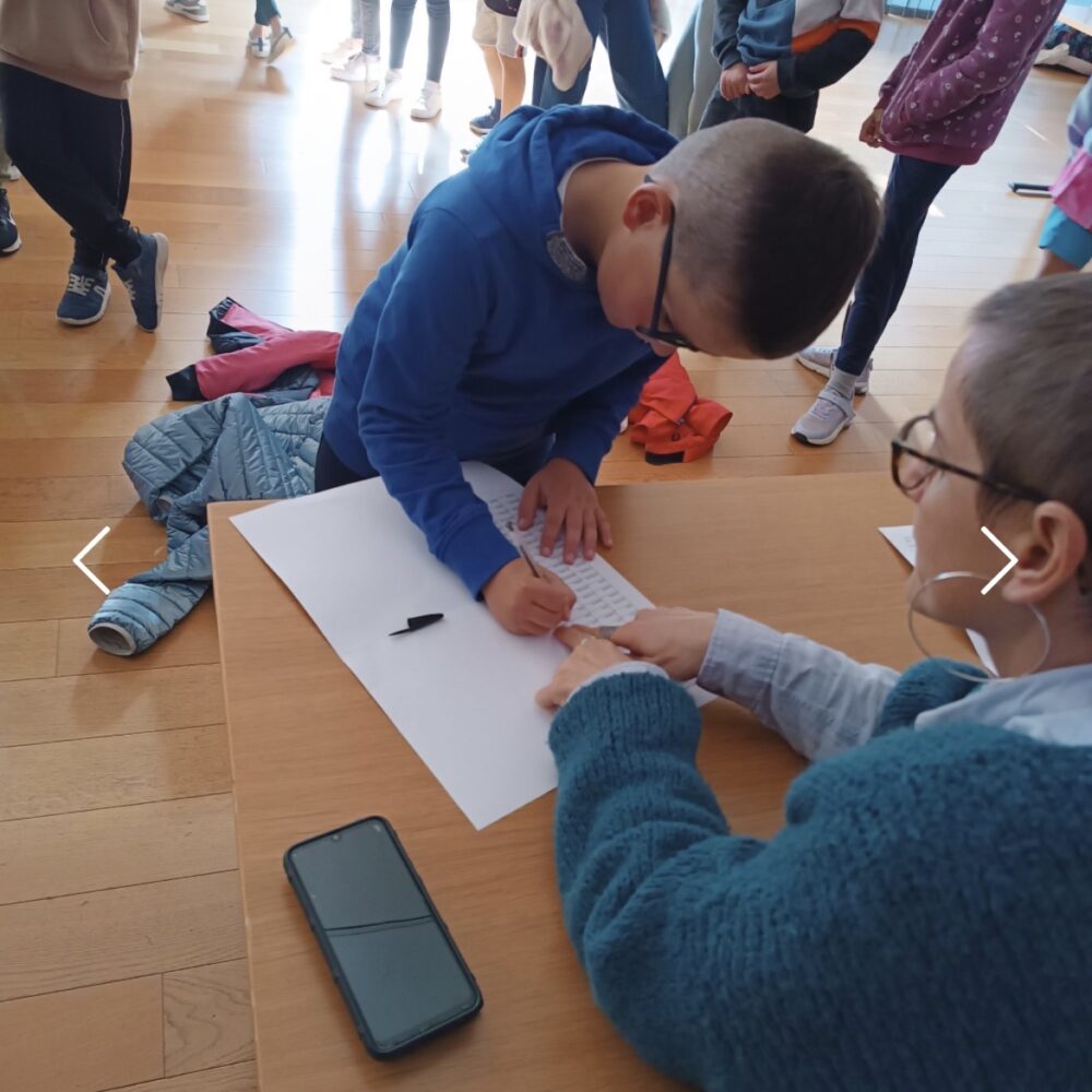 Les enfants ont pris les bulletins des candidats ainsi qu’une enveloppe puis ils sont allés dans l’isoloir. Ils ont ensuite mis leur enveloppe dans l’urne pour voter puis ils ont signé en face de leur nom et prénom.