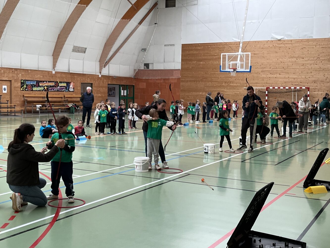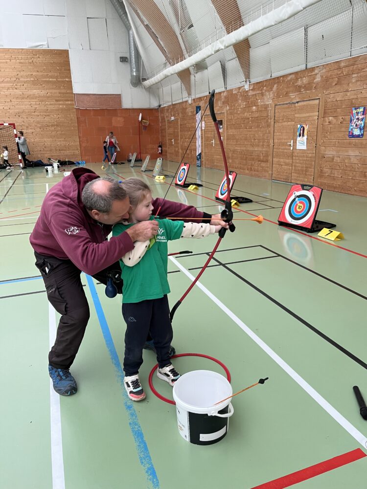 Et dans la salle des sports Mathieu (l’animateur UGSEL) a proposé le tir à l’arc.